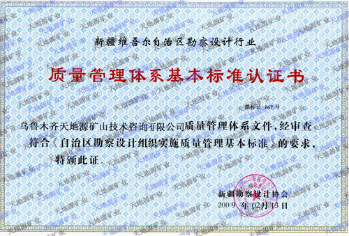 新疆天地源地勘公司成立于2004年,歷經十余年的發展,現持有地質勘查甲級資質和ISO9001:2008質量管理體系認證證書。